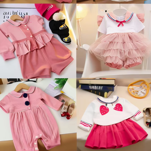 بيع بالجملة الملابس النسائية ذات العلامات التجارية مزيج اللباس المحملات التنورات السراويل قمصان الجينز للأطفال الرضع أزياء الصيف توريد بالجملة