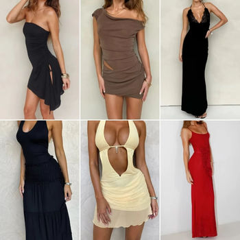 ملابس صيفية تصفيات ، فساتين غير رسمية للنساء ، تيشيرتات ، مخزون بيع بالجملة مع تغليف مختلط ، سعر رخيص