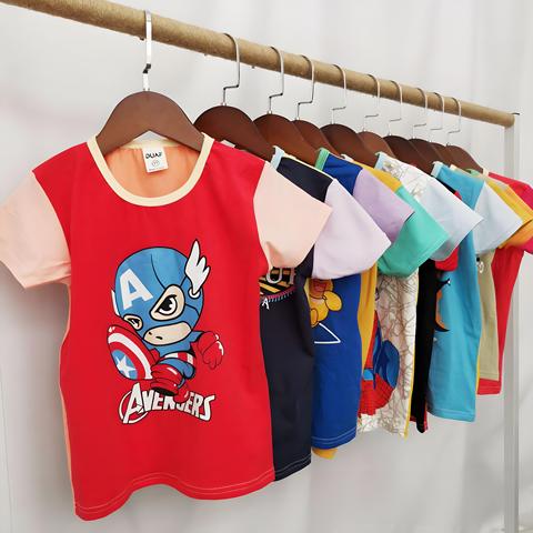 Оптовая продажа, разноцветная детская повседневная одежда, летний мультяшный Печатный стиль, случайные поставки