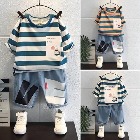 Оптовая продажа, летняя детская одежда в наличии, набор одежды для мальчиков и девочек, комбинезон, комплект из рубашки, летние цвета