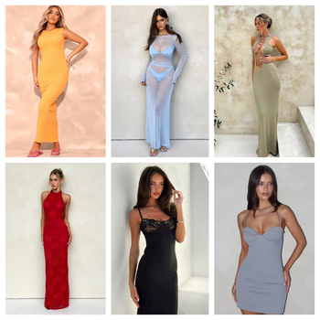 ชุดเดรสหรูหราสไตล์สตรีทลำลองของผู้หญิงชุดเดรสรัดรูปเซ็กซี่แบบสุ่มสำหรับฤดูร้อน2025